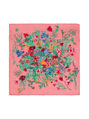 Неповторимый художественный шедевр с разнообразными яркими цветочными мотивами — такой шелковый платок готов сопроводить вас на любое романтическое свидание. Повязав розовый аксессуар у шеи в виде крупного банта в буржуазном стиле, вы будете выглядеть впечатляюще в глазах окружающих людей.