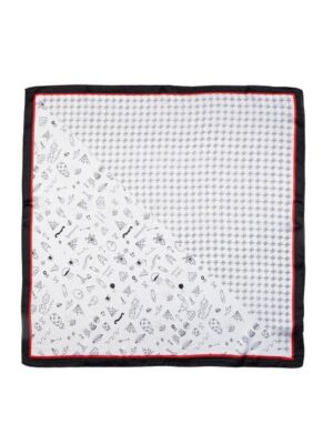 Шелковый платок с геометрическим принтом. <br> Этот элегантный платок выполнен из 30% шелка и 70% вискозы, что делает его мягким, приятным на ощупь и комфортным в носке. Контрастный рисунок придает аксессуару выразительность, а утонченные детали добавляют нотку классики.<br> Этот универсальный аксессуар можно носить различными способами – завязывать на шее, в волосах, использовать как головной убор или декорировать сумку. Такой платок станет стильным дополнением к любому образу или оригинальным подарком для ценителей элегантных аксессуаров.