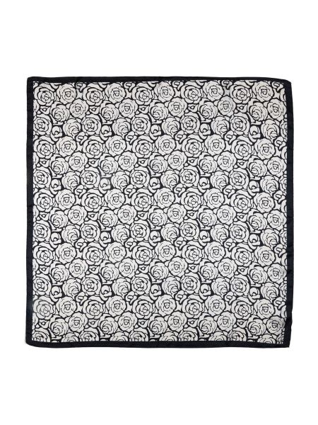 Шелковый платок с цветочным принтом.<br> Этот стильный платок выполнен из 30% шелка и 70% вискозы, что делает его невероятно мягким, легким и приятным в носке. Классический черно-белый цветочный узор с розами добавляет аксессуару женственности и изысканности, а строгая окантовка придает завершенность дизайну. Этот универсальный аксессуар можно носить различными способами – завязывать на шее, в волосах использовать в качестве головного убора или стильного дополнения к сумке. Такой платок станет прекрасным элементом вашего гардероба или элегантным подарком для ценителей изысканных аксессуаров.