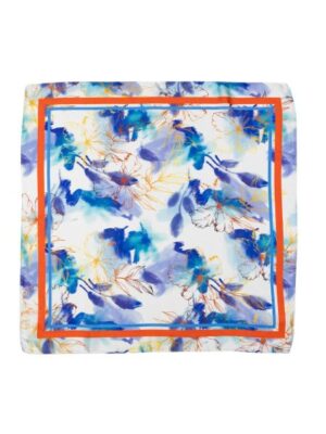 Шелковый платок с акварельным принтом.<br> Этот элегантный платок выполнен из 30% шелка и 70% вискозы, что делает его невероятно мягким и комфортным в носке. Плавные цветовые переходы и легкость акварельных мазков придают аксессуару художественную выразительность, а контрастная окантовка завершает его утонченный образ. Этот универсальный аксессуар можно носить различными способами – завязывать на шее, вплетать в волосы, использовать в качестве головного убора или стильного дополнения к сумке. Такой платок станет изысканным элементом вашего гардероба или оригинальным подарком для любителей уникальных аксессуаров.