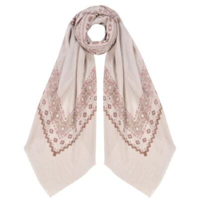 Главная » Аксессуары Платок Просмотров 5 Классический головной платок с натуральным хлопком в составе. В основе ориентальный геометрический принт. По краям декорирован бахромой. Модные истории