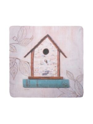 Шейный платок в стиле Прованс с натуральным шелком в составе. На полотне изображен винтажно-цветочный рисунок со скворечником и книгой. Ткань пропускает воздух и обладает струящейся легкостью — невесомая защита от ветра в пыльном городе. Платок придаст шик блузе простого кроя, классическому джемперу и жакету.