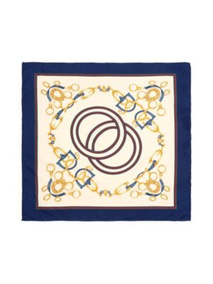 Шелковый платок из 100% шелка кремового цвета с оригинальным узором. Такой аксессуар достоин красной дорожки. С его помощью можно покорить любое сердце. Шелковая ткань легко драпируется на шее, либо можно использовать для трендовой прически, вплетая платок в косу и завязывая волосы в жгут.