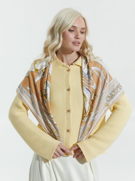 <div>Платок «Сысертский фарфор» от дизайнера Нины Ручкиной посвящается уральскому народному промыслу, известному с 19 века. Композиция платка словно сказочный лабиринт увлекает за собой, вызывая желания рассматривать детали утонченного сервиза работы уральских мастеров. Изящные фарфоровые предметы расположены в ажурном серванте эпохи модерна. Сочетания благородного золота и слоновой кости, плавные линии и стилизованные цветы рождают необычайно элегантный дизайн авторского аксессуара. Такой платок привнесет дополнительный шик как в базовый гардероб, так и в вечерний стиль. Отголоски многоликого русского модерна, декоративность и символизм, история России и современный дизайн превращают этот платок в великолепный подарок со смыслом.<br>Состав: Искусственный шелк 70%, вискоза 30%</div>