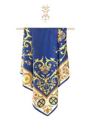 <div>Платок посвящен изображению Собора Рождества Пресвятой Богородицы Зачатьевского монастыря, выполненного в традиционном русском «узорочье» по образцам XVII века. Ныне в обители находятся многие святыни, к которым обращаются с молитвами о счастье дома и материнства.<br> <br>На полотне бережно воспроизведен фресковый рисунок правого крыла собора. Одновременно современный и самобытный, он словно соединяет в пространстве форм русскую веру и русский фольклор. Лепестки пальметты, подобные солнечным лучам, тонкие изгибы стеблей, изящные соцветия, райские птицы образуют воздушный орнамент, наполненный благостью. Композицию завершает ажурная рамка с христианской флоральной символикой. <br> <br>Платок станет Вашим верным и красивым помощником во всех мирских делах!<br><br>Состав: 70% шелк, 30% вискоза.</div>