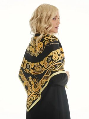 <div>Дамы и господа, вы держите в руках платок «Златоустовская гравюра», дизайн которого сделан совместно с авторами художественных мастерских «Лик». Свыше 190 лет развивается и совершенствуется редкое искусство — Златоустовская гравюра на стали. Гравюра на стали — это поэма в металле. Художники, используя его чудесные свойства и применяя специальную обработку, придают стали различные цвета и создают уникальные изделия, прославляющие Россию на весь мир. Платок «Златоустовская гравюра» от бренда «Русские в моде» — это роскошь, изящество и характер, оригинальный аксессуар и настроение праздника, который всегда с Вами.<br>Состав: Искусственный шелк 70%, вискоза 30%</div>