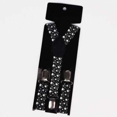 Почувствуйте стиль и комфорт, которые сделают ваш день ярче с нашими детскими подтяжками со звездочками. Удобные и практичные, они идеально подойдут для маленьких модников. Черный/белый дизайн создаёт контрастный и стильный эффект, делая каждую прогулку особенной.Особенности Ширина 2,5 см обеспечивает идеальный баланс между комфортом и надёжностью. Текстильный материал приятен на ощупь и долговечен. Узор в виде звезд добавляет игривости и смелости. Разработаны специально для мальчиков, чтобы подчеркнуть их индивидуальность.Преимущества для вашего ребёнкаЭти подтяжки создают ощущение уверенности и удобства, позволяя детям свободно двигаться и играть. Они — незаменимый аксессуар в гардеробе каждого маленького джентльмена, который стремится выделиться и быть в центре внимания.