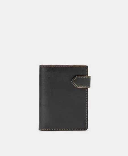 Вертикальный бумажник из натуральной винтажной кожи, закрывается фигурным хлястиком на кнопку. На внутреннем развороте расположены два глубоких отделения для купюр, карман для мелочи, дополнительный с
