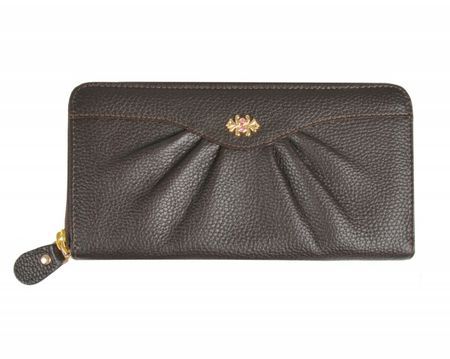 Портмоне женское из натуральной кожи, закрывается на молнию. Внутри три открытых отделения, одно узкое отделение на молнии для мелочи, по бокам с двух сторон по шесть карманов для карт.Материал: Натуральная кожа , Размер: 200x115x20