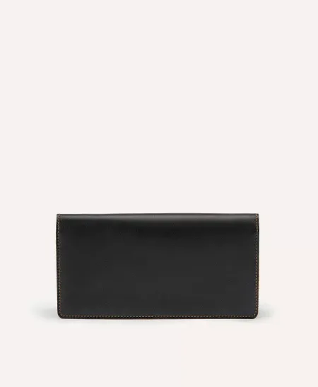 Мужское портмоне из натуральной кожи на кнопке. Внутри расположены основное отделение для купюр, дополнительный карман на молнии, восемь прорезей для карт, отделение для чеков и бумаг.