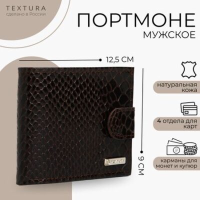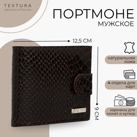 Портмоне мужское на кнопке TEXTURA, отдел для карт, для монет, цвет коричневый. Это мужское портмоне — прекрасное сочетание стиля и функциональности. Оно изготовленно из прочного материала. Поэтому оно не только привлекает внимание своей текстурой, но и обещает долгий срок службы. Этот аксессуар идеально подходит для мужчин, которые ценят порядок в своих вещах. Кошелек имеет удобные отделы, в которых можно хранить монеты, банковские карты, купюры, что делает его практичным. Застежка гарантирует надежность и легкость в использовании.