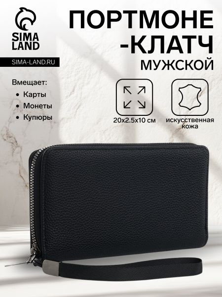 Портмоне мужское на молнии, отдел для карт, монет, цвет черный