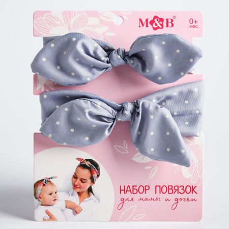 Повязка на голову для мамы и дочки M&B «Family look: горошек» 2 шт., серый. Обхват головы повязки для малышки: минимум — 43 см, максимум — 56 см Обхват повязки для взрослого: минимум — 53 максимум — 67 см