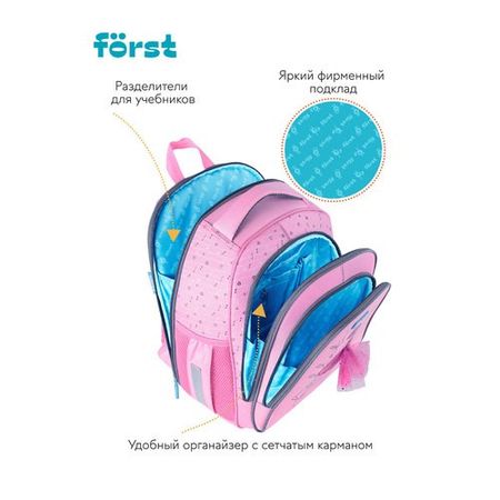 Эргономичный ранец серии F-Base рассчитан на учеников младшей и средней школы. В ранце предусмотрены 3 отделения с разделителями для тетрадей, 2 боковых кармана и внутренний органайзер. Модель оснащена правильной правильной анатомической спинкой с покрытием из вентиляционного материала. Нагрудное крепление обеспечивает плотную фиксацию ранца и не дает лямкам спадать с плеч во время движения. Дно ранца оснащено пластиковыми ножками для защиты содержимого от влаги. Наличие светоотражающих элементов обеспечивает безопасное движение ребёнка в тёмное время суток.