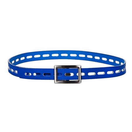 Этот необычный перфорированный ремень ярко-синего цвета из экокожи шириной 3см и длиной 110см с темной металлической пряжкой станет любимым летним аксессуаром в Вашем гардеробе.