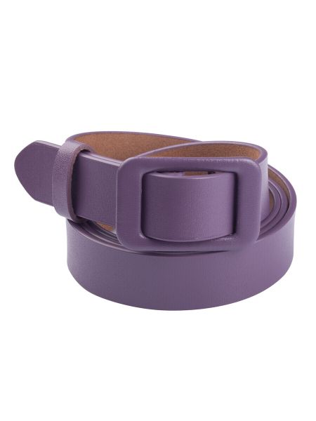 Ремень фиолетового цвета из высококачественной кожи, с пряжкой в цвет изделия подчеркнет достоинства фигуры и станет ключевым акцентом всего образа в целом. Неширокие модели, призванны подчеркнуть тонкую талию обладательницы. Прекрасно комбинируются с жакетами, рубашками свободного кроя, платьями, кардиганами. Очень эффектно такой ремень смотрится с платьями из легких тканей.