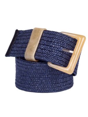 Стильный ремень-резинка чернильного цвета из текстиля с пряжкой, имтирующей слоновую кость. Плетеная структура ремня позволяет застегнуть его в любом удобном месте, что в значительной степени увеличивает его практичность при ношении и позволяет отрегулировать для себя комфортный размер. Модель отлично сочетается с нейтральными рубашками, пиджаками, джинсами и брюками, разнообразит любой образ, не перегружая его.