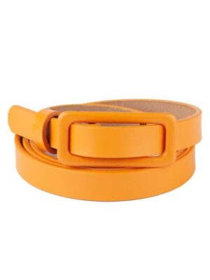 Ремень ярко-желтого цвета из высококачественной кожи, с пряжкой в цвет изделия подчеркнет достоинства фигуры и станет ключевым акцентом всего образа в целом. Узкие модели, призванны подчеркнуть тонкую талию обладательницы. Прекрасно комбинируются с жакетами, рубашками свободного кроя, платьями, кардиганами. Очень эффектно такой ремень смотрится с платьями из легких тканей. Узкий пояс подойдет почти к любой фигуре.