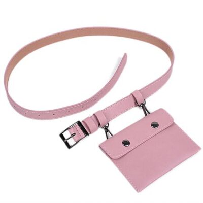 Стильный розовый ремень из искусственной кожи с сумочкой на карабинах для разных мелочей. Оригинальное дизайнерское воплощение тренда поясных сумок — пастельные тона, минимализм, классическая фурнитура. Такой ремень эффектно впишется в группу повседневных аксессуаров для вашего гардероба, а пастельный оттенок придаст ноту романтичности и нежности образу! Размер сумочки: 13*10*0,8 см.