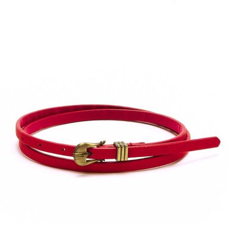 Женский ремень из экокожи от бельгийского бренда Jane's Story. Ремень с металлической пряжкой станет оригинальным акцентом вашего образа. Размер ремня (с пряжкой) — 102*1 см.