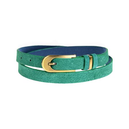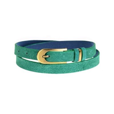 Женский ремень из натуральной кожи с текстурой замши от бельгийского бренда Jane's Story. Ремень с металлической пряжкой станет оригинальным акцентом вашего образа. Размер ремня (с пряжкой) — 103*2 см.