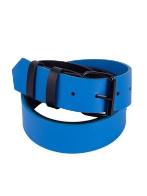 Классический широкий ремень выполнен из натуральной кожи двух цветов, декорирован пряжкой черного цвета. Контрастное сочетание черного и василькового, использованное в оформлении, выглядят очень оригинально и подчеркивают незаурядность обладательницы аксессуара.