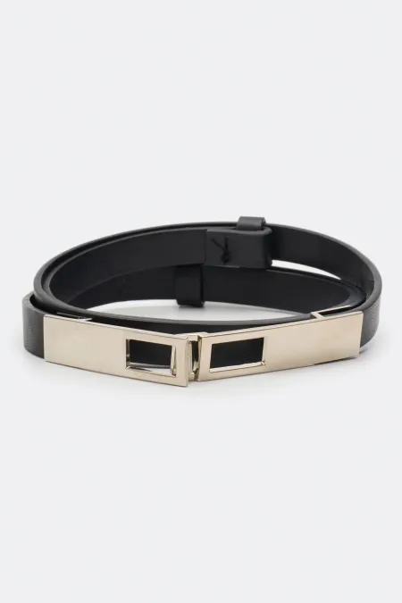 Узкий ремень из искусственной кожи с акцентной пряжкой. Регулируется по размеру. Состав: искусственная кожа