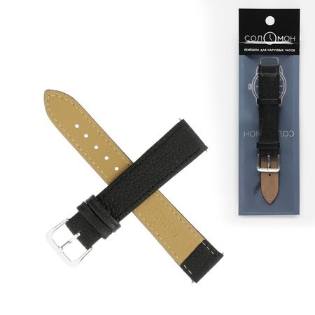 Ремешок для часов «Соломон», 18 мм, натуральная кожа, l-20 см, черный с тиснением