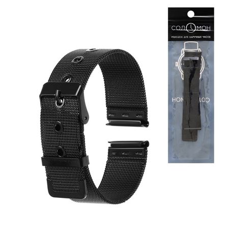 Ремешок для часов «Соломон», 20 мм, нержавеющая сталь, l-19.5 см, черный