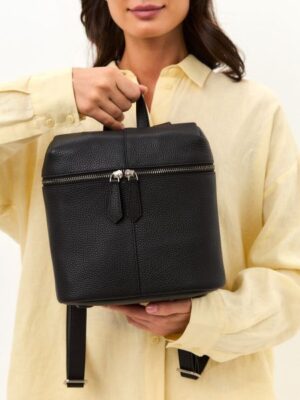 <div>Рюкзак женский на ручке средний кожаный. Из натуральной зернистой кожи, закрывается на молнию. В виде котомки, мягкий, но хорошо держит форму. В городском спортивном стиле. Легкий, удобный. Подходит для повседневной носки, а также в качестве подарка.<br>Внутри одно отделение, один карман на молнии, один открытый карман. Снаружи сзади карман на молнии. На дне рюкзака кожаные нашивки. Высота ручки 5 см. Плечевые лямки с регулировкой длины максимум 90 см. Вес рюкзака 600 гр., в упаковке 750 гр. Производство Россия.</div>