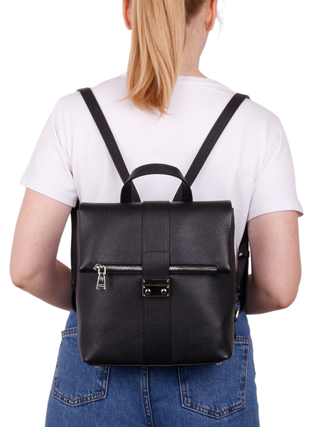 <div>Рюкзак женский с ручкой на двух регулируемых лямках из натуральной зерненой кожи, закрывается на клапан и замок. В городском стиле, мягкий, легкий, функциональный. Подходит для повседневной носки, учебы, прогулок, в качестве подарка. Внутри одно отделение, один карман на молнии, один открытый карман. В клапане большой карман на молнии, сзади карман на молнии. На дне есть металлические ножки. вес рюкзака 700 грамм, в упаковке 750 грамм.Высота ручки 8 см. Натуральная кожа-100%. Высота — 31 см, ширина — 26 см, глубина — 12 см</div>