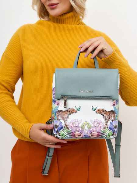 <div>Рюкзак женский с ручкой на двух регулируемых лямках из натуральной зерненой кожи, закрывается на клапан и магнитные кнопки. В городском стиле, мягкий, легкий, функциональный. На передней стенке нежный летний принт. Подходит для повседневной носки, учебы, прогулок, в качестве подарка. Внутри одно отделение, один карман на молнии, один открытый карман. В клапане большой карман на молнии, сзади карман на молнии. На дне есть металлические ножки. вес рюкзака 650 грамм, в упаковке 700 грамм. Производство Россия. Состав: натуральная кожа. Высота -31 см. Длина — 26 см. Глубина -12 см</div>