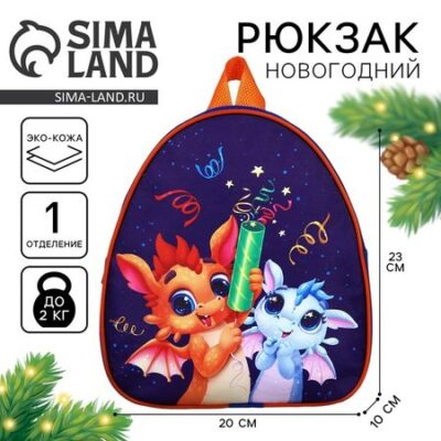 Рюкзак детский новогодний «Дракончики с хлопушками», 23 х 20,5 см