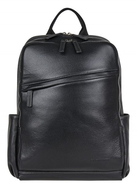 Рюкзак мужской с двумя отделениями. Внутри одного потайной карман на молнии, отделение на липучке и два открытых кармана, в другом отделение открытый карман. Снаружи на передней стенке карман на молнии и на задней тоже, по бокам открытые карманы.Ручка для переноски и две регулируемые лямки.Материал: Натуральная кожа , Размер: 290x400x130
