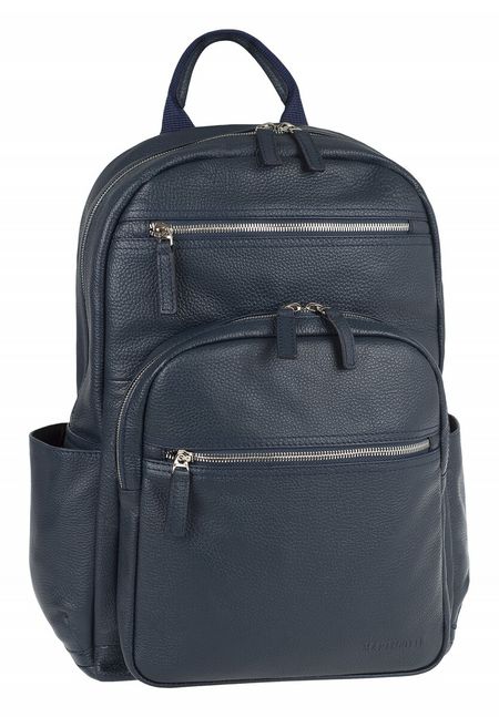 Рюкзак мужской из натуральной кожи, одно основное отделение закрывается на молнию, внутри карман на молнии и два маленьких открытых кармана. На передней стенке три кармана на молнии, по бокам открытые карманы, на задней стенке карман на молнии. Ручка-петля и регулируемые плечевые лямки(90см).Материал: Натуральная кожа , Размер: 320x450x130