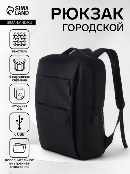 Главная » Аксессуары Рюкзак мужской на молнии, 4 наружных кармана, с USB, цвет чёрный Просмотров 5 Рюкзак мужской на молнии, 4 наружных кармана, с USB, цвет чёрный