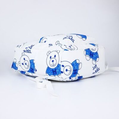 Рюкзак школьный на молнии, с карманами, белый/синий