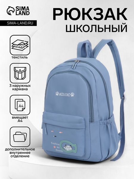 Главная » Аксессуары Рюкзак школьный на молнии, с карманами, голубой Просмотров 4 Рюкзак школьный на молнии, с карманами, голубой