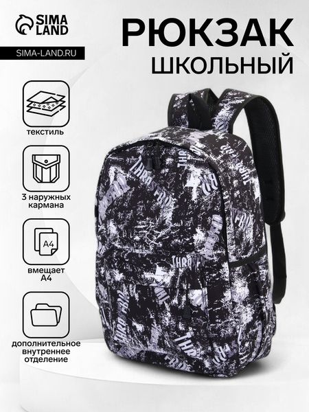 Главная » Аксессуары Рюкзак школьный на молнии, с карманами, с принтом, чёрный/белый Просмотров 6 Рюкзак школьный на молнии, с карманами, с принтом, чёрный/белый