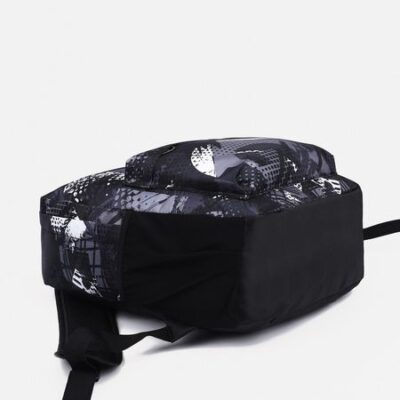 Рюкзак школьный на молнии, с карманами, с принтом, чёрный/серый