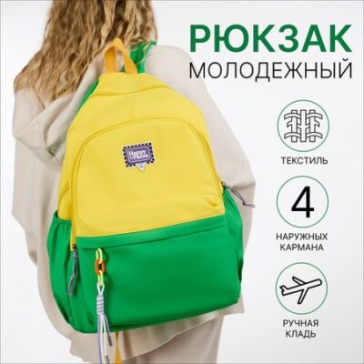 Главная » Аксессуары Рюкзак школьный на молнии, с карманами, жёлтый/зелёный Просмотров 4 Рюкзак школьный на молнии, с карманами, жёлтый/зелёный