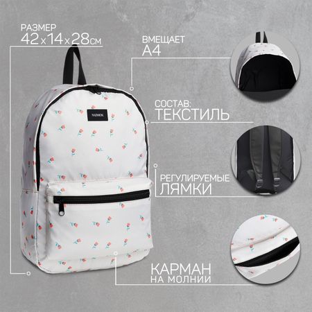 Главная » Аксессуары Рюкзак школьный текстильный Просмотров 4 Рюкзак школьный текстильный «Цветы», 42×14×28 см, белый. NAZAMOK