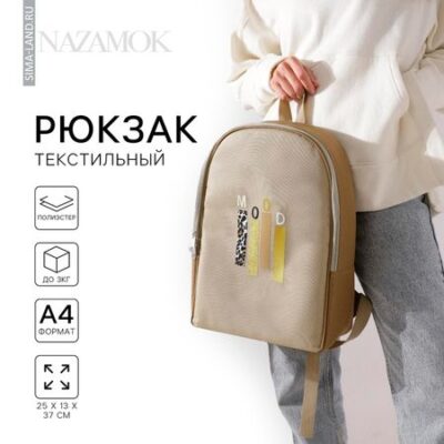 Главная » Аксессуары Рюкзак школьный текстильный Mood, 25×13×37 см, бежевый Просмотров 4 Рюкзак школьный текстильный Mood, 25×13×37 см, бежевый NAZAMOK