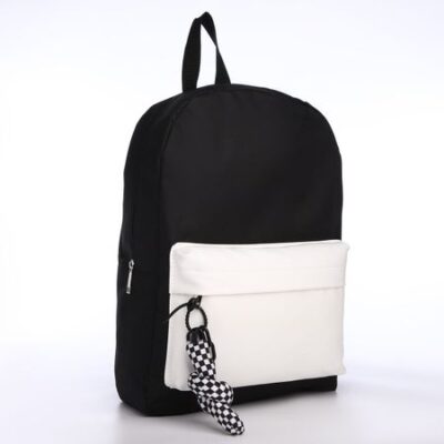 Рюкзак школьный текстильный с карманом кожзам, 38×29×11 см, черный