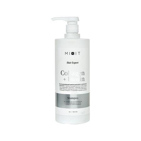 Восстанавливающий шампунь для волос MIXIT COLLAGEN+BIOTIN с коллагеном и биотином эффективно увлажняет и восстанавливает. Коллаген укрепляет структуру волос, делает их более сильными и здоровыми. Биотин улучшает состояние кожи головы, предотвращает появление перхоти и способствует укреплению волос. Шампунь MIXIT COLLAGEN+BIOTIN возвращает здоровый блеск и ухоженный вид. Подходит для ежедневного использования.