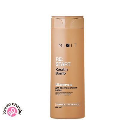 Шампунь MIXIT RE:START для интенсивного восстановления поврежденных волос бережно очищает без пересушивания. Кератин заполняет поврежденные участки волоса, восстанавливая его структуру изнутри и создавая защитный слой. Липиды укрепляют естественный барьер кутикулы, предотвращая потерю влаги и появление секущихся кончиков. Натуральное кокосовое масло интенсивно питает и смягчает, делая волосы послушными и сияющими. Шампунь MIXIT RE:START уменьшается электризация и пушистость. Подходит для частого использования. Не содержит агрессивных ПАВ.