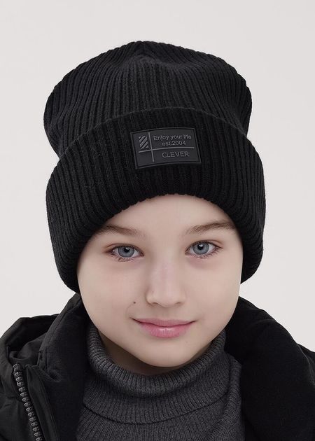 Детская вязаная шапка Clever в стиле unisex. Выполнена из акриловой пряжи с добавкой шерсти и дополнена флисовой теплой подкладкой.<br> Одноцветная теплая шапка рассчитана на ношение при температуре от + 5 до — 30 градусов и подходит для повседневной носки, занятий спортом или прогулок.<br> Удлиненная зимняя шапка декорирована прорезиненой нашивкой и послужит не только отличной защитой от холода и ветра, но и модным аксессуаром для создания стильного повседневного образа.