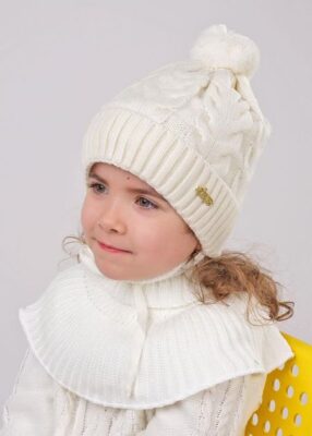 Детская двухслойная шапка Clever для девочки. Выполнена классическим переплетением "косы" из смесовой пряжи акрила (искусственная шерсть) и натуральной шерсти, дополнена подкладкой на флисе. Шапка с отворотом и завязками декорирована помпоном и лаконичной брендовой нашивкой. <br> Удобная теплая шапка рассчитана на ношение при температуре от + 5 до — 25 градусов и подходит для повседневной носки или прогулок.<br> Стильная зимняя шапка послужит не только отличной защитой от холода и ветра, но и модным аксессуаром для создания стильного повседневного образа.