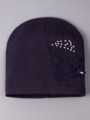 Главная » Аксессуары Шапка Просмотров 4 Шапка трикотажная, форма лопата, украшение из страз и бусин, сбоку бантик<br> Состав: 95% хлопок; 5% лайкра M&D