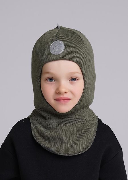 Шапка-шлем для мальчика выполнена из мягкой акриловой пряжи с добавлением полиамида. Изделие декорировано светоотражающей нашивкой в центральной части лба, в области шеи — ластичная ножка для более плотного прилегания. Модель на синтепоне с флисовым подкладом послужит качественной защитой от холода и ветра в зимнее время года.<br> Рекомендуется стирать в режиме деликатной стирки при температуре до 30 градусов.